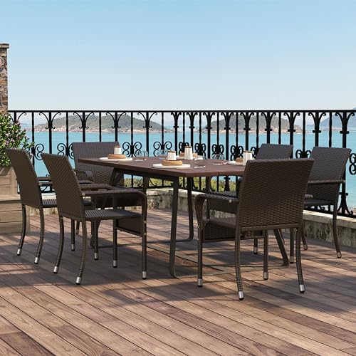 Yaheetech Set of 2 Rattan Stackable Outdoor Garden Chair Lightweight All-Weather w/Armrests for Patio, Backyard, Poolside, Brown