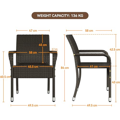 - Elegant Chair Set: The stylish rattan weave of the outdoor chair set is ideal for gardens, patios, backyards, and poolside areas, bringing a relaxed vibe and enhancing the beauty of your outdoor space