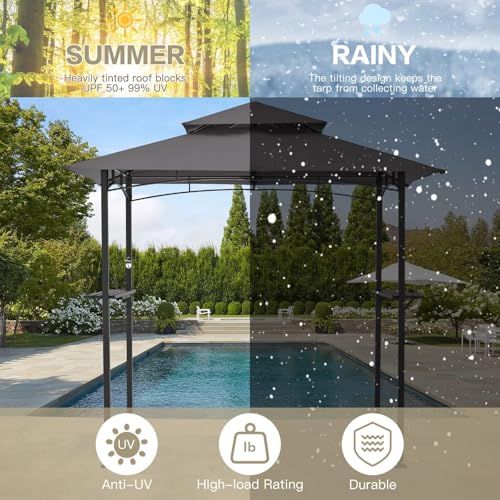 - 【Double-Tier BBQ Canopy】2.5m/8'x5' thickened polyester canopy, windproof, UV/fade & high-temperature resistant, keeps you cool while grilling.
