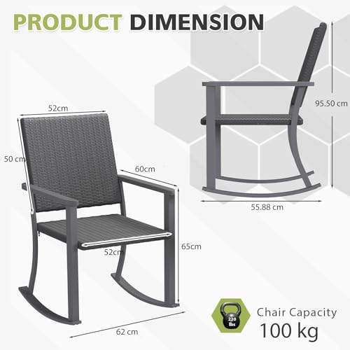 - 【All-Weather Durability】: Crafted with high-quality PE rattan wicker and a powder-coated steel frame, this rocking chair is rust-resistant, UV-protected, and designed to withstand the elements for long-lasting outdoor use.